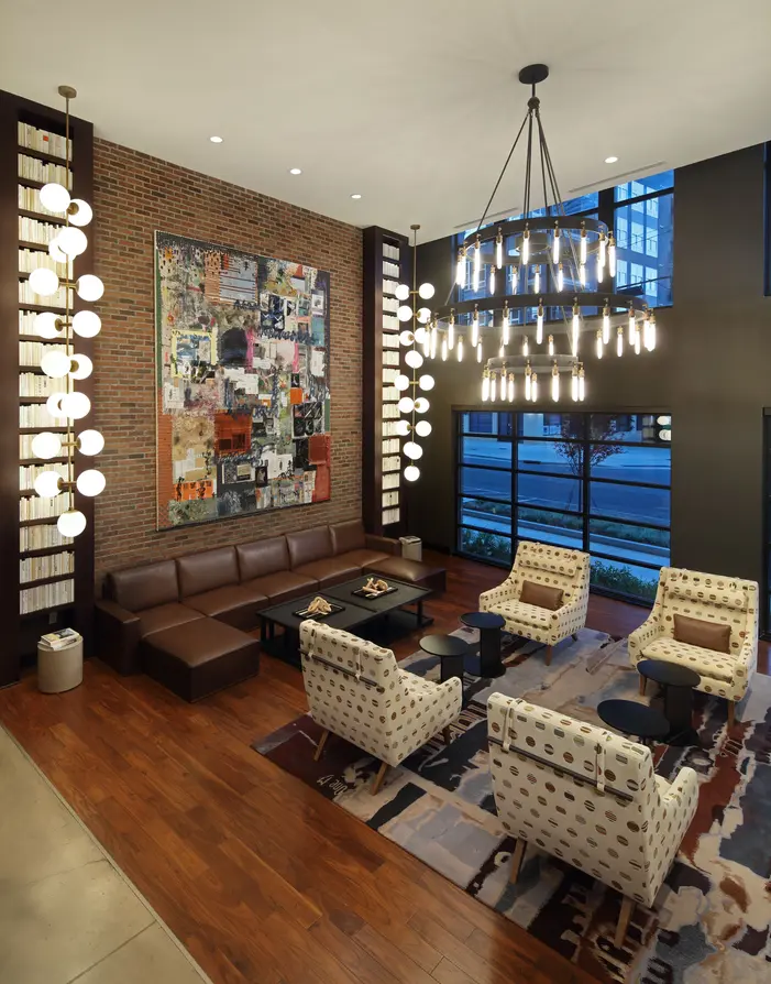 Inspired by the site’s former life as a South End print shop, this multifamily community blends industrial heritage with modern ease, creating a warm, collected environment rooted in creativity and local history. The interiors draw from the textures and tools of traditional printmaking. Inked metals, worn leathers, layered papers, and archival graphics are reimagined through a contemporary lens to feel purposeful yet effortless. Rich materials, curated art, and subtle storytelling details celebrate the neighborhood’s legacy of makers, activists, and artists while offering residents a stylish, comfortable backdrop for daily living. The result is a distinctive, character-filled home that feels authentically connected to Charlotte’s vibrant South End culture.